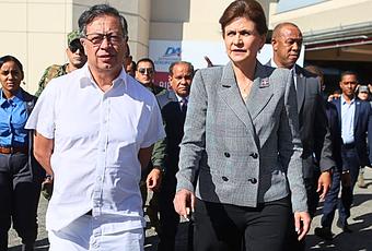 El presidente de Colombia, Gustavo Petro, en su ruta final hacia Haití, hizo este miércoles una escala en República Dominicana y fue recibido por la vicepresidenta Raquel Peña.