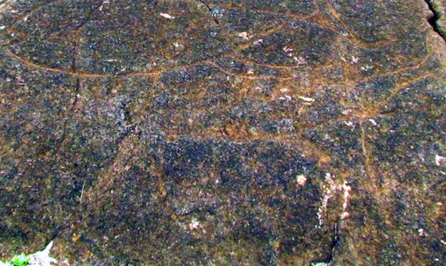 Petroglifos en Tongariki. Muy cerca, frente al ahu de Tongariki se tienen varios petroglifos de tortugas y especies marinas.