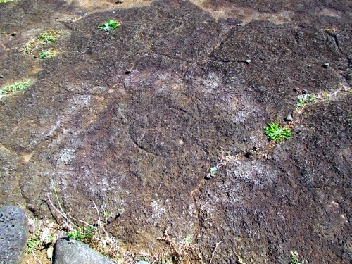 Entre los petroglifos principales, grabados sobre los flujos de lava se destacan: