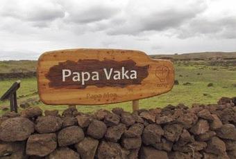 Papa Vaka. En la costa norte de la isla, entre los ahu (ceremonias ceremoniales) de Tongariki y Anakena se encuentra Papa Vaka, sobre una ruta asfaltada. Es un lugar con varios petroglifos en unas piedras o flujos de lava endurecidos.