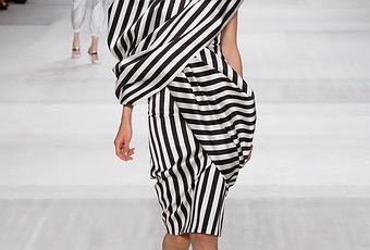 Chanel: Karl Lagerfeld lo hizo de nuevo. Si tuviésemos que asociar la palabra sorpresa a una persona, Karl Lagerfeld sería un gran candidato. Y si tuviésemos que buscar la palabra para definir su nueva colección barroco sería la ideal. La imaginación al poder: el siempre y tan característico tweed aplicado a varias prendas (no sólo a su famosa chaqueta); bermudas que se asoman por debajo de faldas (sinónimo de comodidad); vestidos con bordados; dorados, metalizados, grises, azules, rojos; plumas. Está claro, en su imaginación todo es posible. Tal es así que, aunque suene paradójico, en el barroco encontró su mejor definición de modernidad. ¿Los detalles? El encanto de la sencillez: ojotas con moños de satén y botas de caña alta para contrarrestar tan intensidad en cada uno de los diseños.