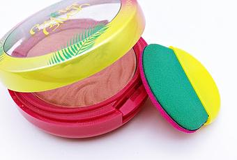 El packaging es similar al del Butter Bronzer. Debajo del colorete se levanta la tapita y encontramos un espejito y una especia de brocha esponjita doble, por un lado mas porosa y por otro lado mas suave.