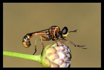 "Pequeño díptero de la familia Conopidae, endoparásito de abejas y avispas. Es decir, la hembra realiza la puesta en el interior de sus víctimas, garantizando así la disponibilidad de alimento para las larvas."
