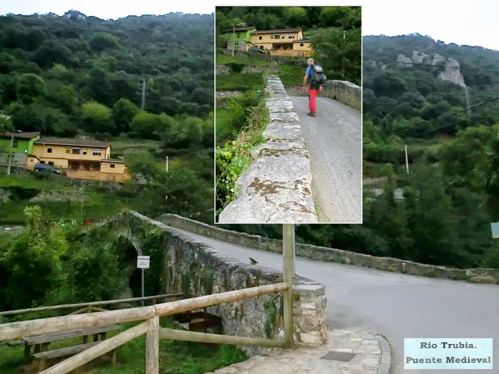 Cruzamos el río Trubia por el puente medieval, con perfil alomado y un solo arco, por el que discurre la popular Senda del Oso