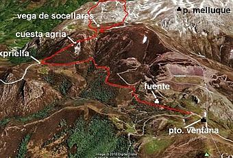 descenso hasta la vega socellaresel descenso lo realizaremos por el collado que separa el pico sobre el tambarón y los picos de sobre el prau la silla, enlazando la llamada senda covián con la vega socellares, desde la cual accederemos a la cuesta agria y vuelta hasta el pto. ventana. fin de ruta.
