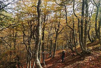 adentrándose en otro magnífico hayedo donde aún encontramos ejemplares de haya con forma de candelabro.