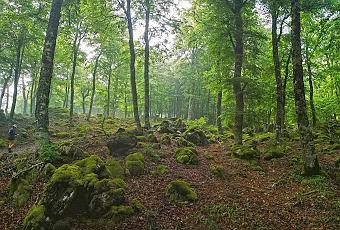 Dejamos atrás el hayedo y nos arrimamos a los contrafuertes calizos de la Peña la Collada