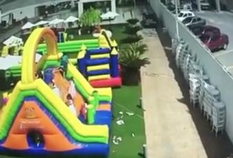San Luis Potosí.- Este domingo se registró un hecho lamentable debido a una fuerte racha de viento que alzo por los aires un juego inflable y en el que resultó lesionada Fátima Monserrat Palomares Ovalle.