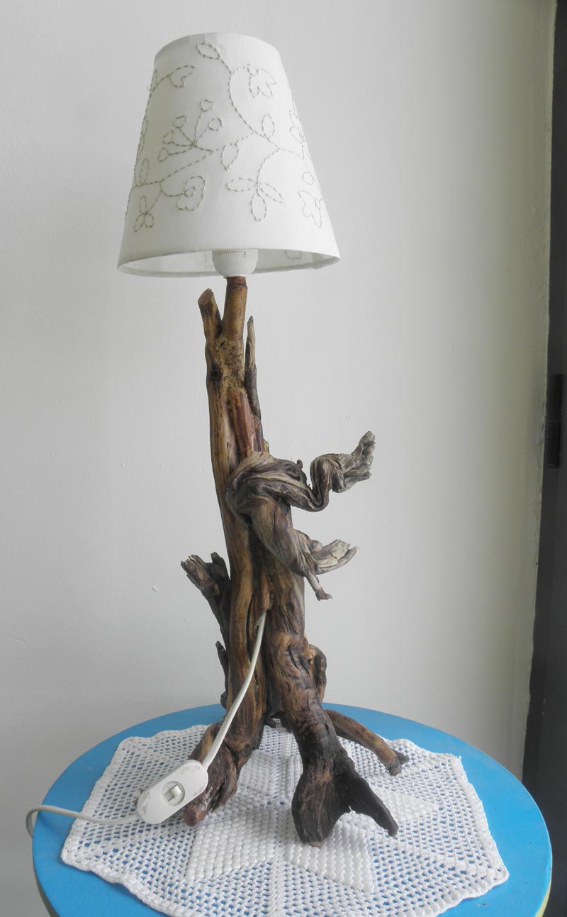 Algunas raices de las jaras muertas me emperazaron a resultar de lo más chulas y de ahí nació este pie para lámpara.