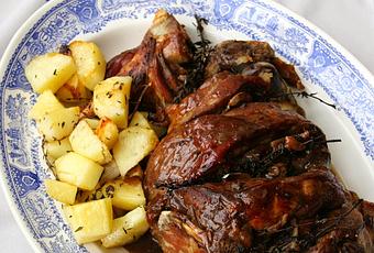 Sacamos el cordero del horno y lo cambiamos a otra fuente.
