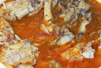 Del cerdo se aprovecha todo...Sí, ya sé que los pies de cerdo gustan a una gran minoría..., pero a mí me encantan y no podía dejar de compartir este rico plato contigo.Mucha gente los llama "manitas" claro que queda más fino.., pero en mi casa toda la vida los hemos llamado pies.Los hago de la manera más simple que te puedas imaginar. La receta me la dio mi madre días antes de casarme junto con otras tantas que escribí en una libreta, y siempre los hago así ya que no dan trabajo y quedan muy sabrosos. A simple vista pueden parecer muy "grasientos" pero es el color que da el pimentón. Son unos pies de lo más light y quedan deliciosos. El comino y el pimentón le dan todo el sabor al plato.Yo los presento enteros porque nos gusta más, si los prefieres deshuesados, espera a que estén fríos para evitar quemarte.Si te gustan los pies, no dudes en hacerlos.INGREDIENTES:5 pies de cerdo cortados por la mitad2, 5 gr. de hebras de comino1 cebolla grande3 ajoscaldo de la cocción de los pies (hasta cubrir)15 gr. de sal15 gr. de pimentón ocal (1/2 dulce y 1/2 picante)1 hoja de laurelASÍ LO HICE:Pica la cebolla y el ajo. En una sartén, añade un poco de aceite y sofríe.