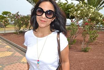 Esta es mi apuesta para llevar los pantalones tipo pijama, simplemente combinándolo con una camiseta, si ya sé que no es nada arriesgado pero es una apuesta segura. Lo animo un poco con este colgante de calavera que ya saben que me encantan y zapatos Mustang del verano pasado, unas sandalias comodísimas que seguiré usando mucho este.