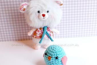 Buenos días,Hoy toca osito, o mejor dicho osita :)Pilarin, una pillina de apenas 11 cm- aún no he tenido tiempo de medirla con exactitud, pero mas o menos por ahí va la cosa.Con ella he vuelto a sacar del cajón la tela de peluche, un material que también me gusta bastante- de hecho el primero que utilicé con los primeros ositos combinando tela y crochet.Cada material tiene su alma, es divertido mezclarlos e ir variando según la inspiración del momento.Me gustaría experimentar con otros materiales nuevos a los que le he echado el ojo, pero los días no me dan para más, o mejor dicho las horas, porque ahora ya no tengo ni días. En el momento mas inesperado la tortilla se da la vuelta y todo cambia.Estas ultimas semanas no he tenido tiempo de hacer casi nada, ando un poco revolucionada con cambios horarios y estudiando la manera de organizarme un poco. Aun así espero poder asomar por aquí con la frecuencia acostumbrada.A ver como me lo monto....El tiempo para visitar blogs y vaguear por la web, desgraciadamente también he tenido que reducirlo y ya no solo por falta de tiempo, sino por el tema encargos, que también absorbe mucho( mi lentitud también tiene la culpa) pero bueno, es lo que hay por el momento.....Paro ya, que parezco una abuela quejicosa Os dejo con Pilarin, que afortunadamente no sabe lo que es el estrés.Espero que no lo sepa nunca :))
