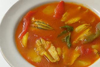 - Añade los filetes del pescado, prueba de sal, y finalmente corta el pimiento a tiras y lo pones por encima.