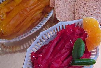 - Pimientos rojos y amarillos 500 g (después de limpios).- Azúcar 250 g.- Zumo de naranja 125 ml.- Agua 25 ml.- Sal una pizca.-Ralladura de naranja.