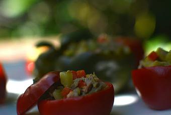 Hola a todos... Aquí os traigo unos deliciosos pimientos cherry, que aparte de vistosos son muy sanos y fáciles de preparar, los he rellenado con un guiso de vegetales y atún y el resultado no podría ser mejor!!