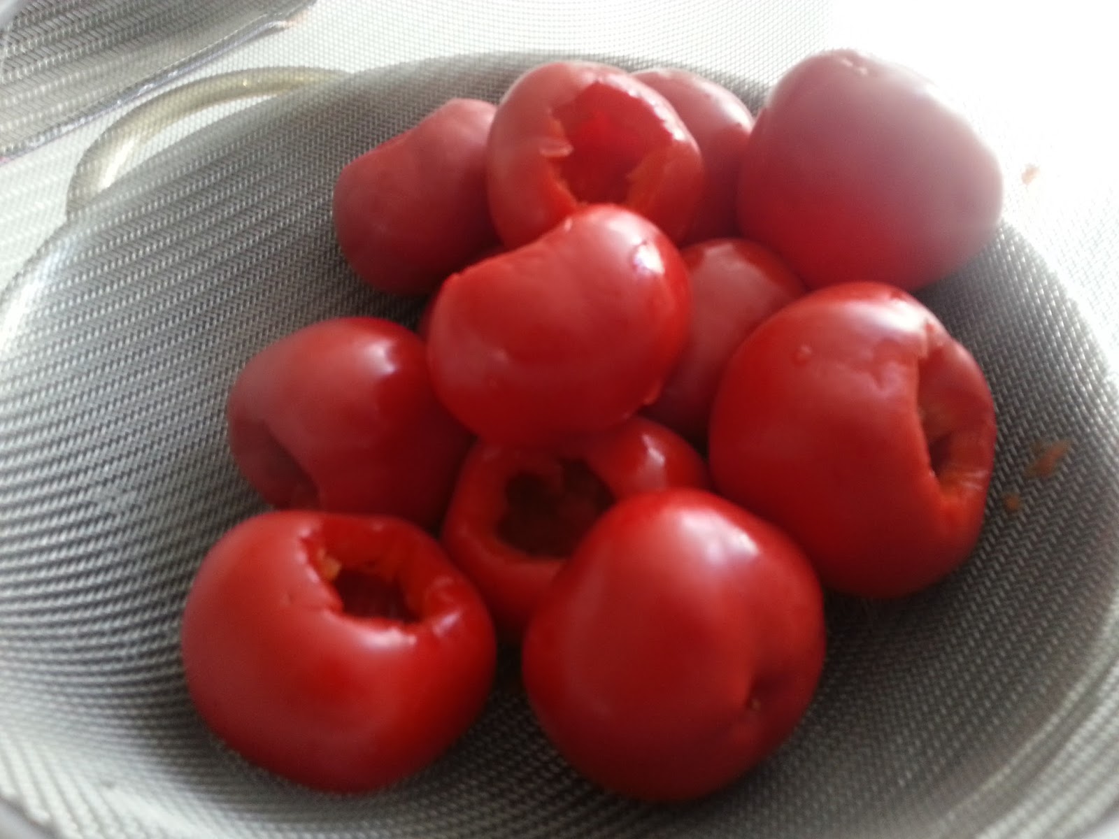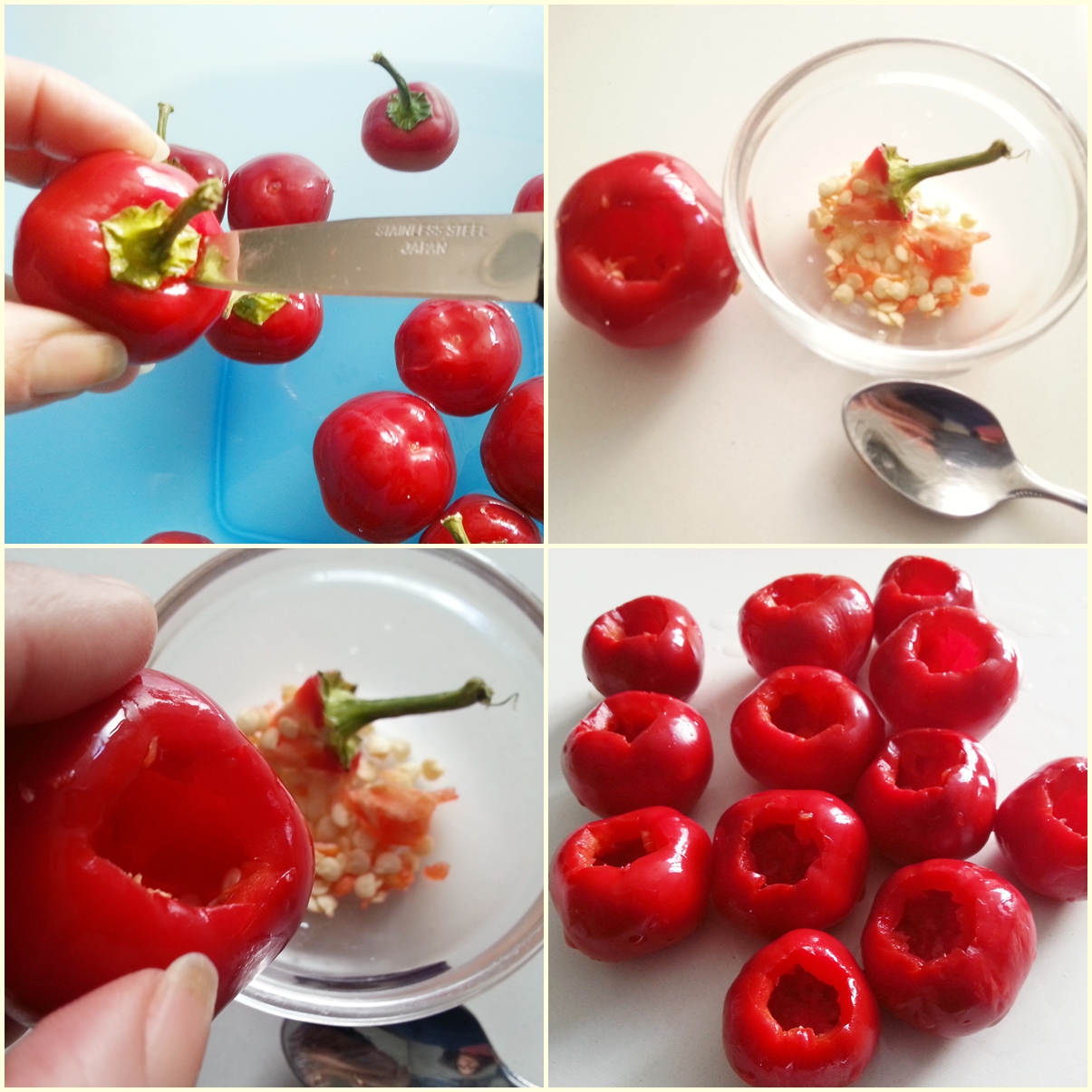 A la vista parecen tomates cherry, en realidad no tenía ni idea de que hubiese pimientos de este tamaño, fue todo un descubrimiento para mí.