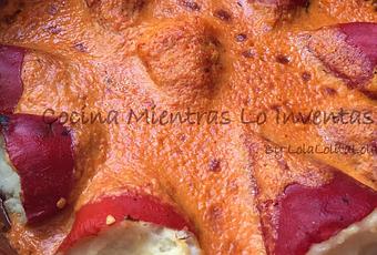 Paso 9: Disponemos los pimientos rellenos en un recipiente de barro y sobre ellos la salsa de piquillos.