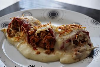 Están muy buenos. Si queréis triturar un pimiento con la bechamel, queda muy bien, resultará una salsa diferente y muy buena.