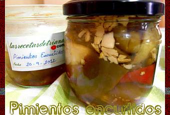 longitudinal, también los podemos hacer enteros si son pequeños, siempre quitando las semillas.2.- Se cuecen unos minutos para que pierdan dureza. Ami no me gusta cocerlos, prefiero notar mas la carne del pimiento, y si encima les vamos a envasar en el proceso de vació de los botes ya reblandecen un poco.3.- Se colocan en una bandeja de horno con el agua de la cocción si hubiésemos cocido antes yvinagre de calidad en una proporción 70/30...a mi es que no me gustamucho el vinagre, pero se puede igualar mas la proporción. Si no hubiésemos cocido con agua del grifo se mezcla el vinagre.4.- En un mortero hacemos un majado de sal, ajos, comino y pimentón rojo dulce.5.- Se le añade el majado a los pimientos más un poco de orégano, seremueve todo bien y se deja un día para que cojan el sabor del majado.