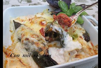 "Todo termina en la vida y hoy nuestro amor se acabó.......". ¿cómo?, ¿que si estoy perdiendo la cabeza?, bueno la verdad es que un poco sí, para que negarlo!!!,...que no, que no os estoy haciendo ninguna confidencia personal, es que de esta forma comienzan unas conocidas sevillanas que se me han venido a la cabeza al pensar que estos son los últimos pimientos de mi macetón de esta temporada y había que darles un homenaje más que merecido por el verano tan bueno que me han ofrecido. ¿Que esto que tiene que ver con las sevillanas?, pues yo que sé, se me ha venido a la cabeza, más raras eran las asociaciones de ideas que hacia FREUD y su dichoso psicoanálisis y sin embargo todavía lo estamos estudiando. En definitiva que la pobrecilla maceta a pasado a mejor vida y esta es mi última receta de pimientos de esta temporada, espero que os guste.Ingredientes:Pimientos verdes tipo italiano.Un cebolla.Chorizo fresco y casero de carnicería.Salsa bechamel.Queso rallado.(Tipo gouda, enmental, edam..)Tabasco (opcional).Aceite de oliva.