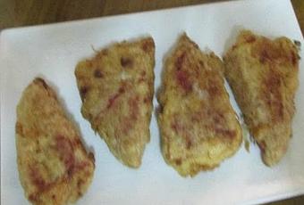Los pasamos por harina, y rebozamos en huevo batido, echamos aceite en un sartén, y los freímos por los dos lados, dejamos sobre papel de cocina, para que absorba el aceite sobrante.