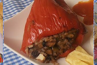 Rellenar con esta mezcla los pimientos y volver a meter en el horno hasta que estén terminados de hacer.