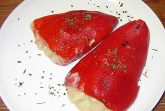 Escurrimos bien los pimientos y procedemos a rellenarlos con ayuda de una cuchara.Una vez están rellenos, espolvoreamos por encima con cilantro picado y servimos. ¡Buen provecho!.