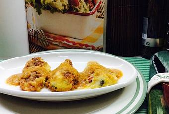 Jueves: Pimientos rellenos con setas y gambas en salsa