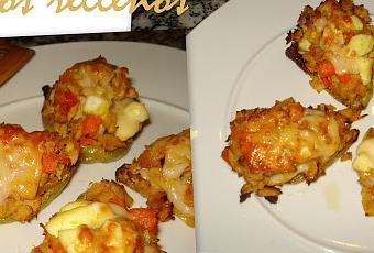 Seguidamente, el primer paso será, precalentar el horno ha 170ºC, y poner a cocer un huevo. Seguiremos cogiendo una bandeja apta para el horno, pondremos media cucharada de aceite y pondremos los pimientos verdes partidos en dos (foto3). Esto irá al horno unos 20 minutos, hasta que veáis que están hechos.