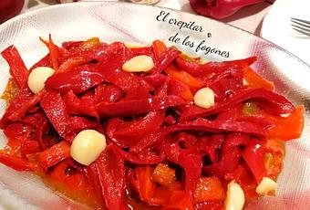 Esta es una preparación que me encanta tener siempre como fondo de nevera ya que puedo servirlos para picotear, hacer una ensalada de pimientos, o añadirlos a un pastel salado, empanadas o empanadillas.