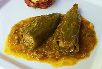 Limpiamos los pimientos y les cortamos un “sombrerito”, los despepitamos cuidando de no romperlos. Los sombreritos les quitamos el pedúnculo y picamos pequeñito el resto que nos servirá para el sofrito.
