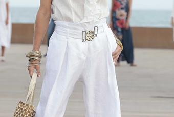 Nicole Neuman con un look total white encargada de abrir el desfile a metros de mar, un clásico de la temporada que celebra su 14 ª edición. La moda tiño de glamour el afterbeach