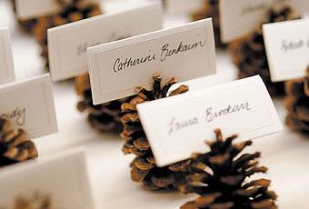 Una idea genial para poner el nombre de los invitados en la mesa esta Navidad son las piñas. Puedes indicar dónde van cada uno de lo comensales de esta manera tan invernal a la vez que decorar la mesa. Un detalle secillo y barato que seguro agradará a tus amigosy familiares.