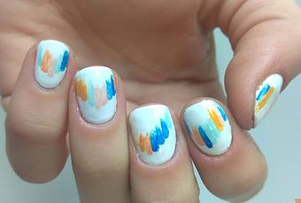 Es una manicura muy sencilla, como ya he dicho, pero tiene una combinación de colores muy bonita y atípica. Mezcla naranja, melocotón, azul oscuro, azul clarito, rosa... Es dispar, pero aún así, no desentonan para nada.