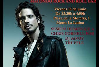 Este viernes 16 de junio Dj Savoy Truffle hará un sentido homenaje a una de las figuras más poliédricas del grunge, Chris Cornell, recientemente fallecido a los 52 años. Será una sesión cargada de mucho grunge, y de todos los proyectos que jalonaron su carrera, es decir, Soundgarden, Temple of the Dog, Audioslave y su carrera en solitario, aderezado con grupos coetáneos y de estilos afines como Nirvana, Pearl Jam, Alice in Chains, Screming Trees, etc...La cita es el viernes 16 de junio a las 23:30h en el Macondo Rock and Roll Bar, a partir de las 23:30h. Metro La Latina.