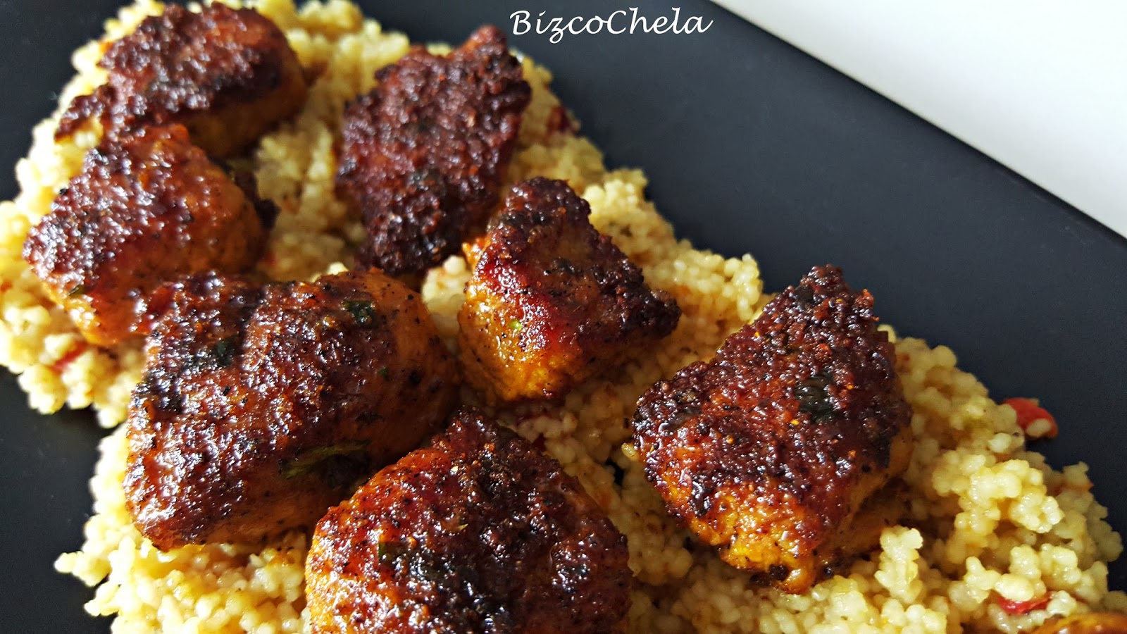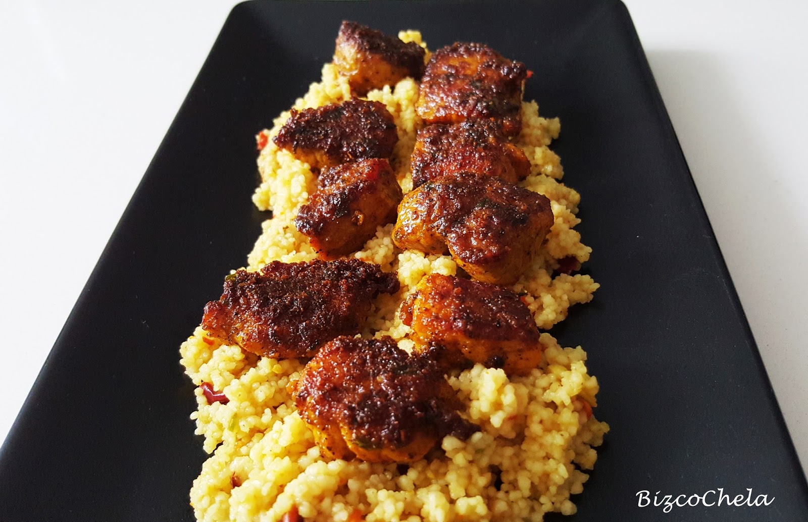Si en otra ocasión os presenté los pinchitos con el Ras al hanout y con carne de pollo, en esta ocasión son de carne de cerdo (esta es la única carne que no te permiten comer por allí. ....) y con una mezcla de especias que me trajo de aquellos lares. Prometo hacerlos de cordero la próxima vez.