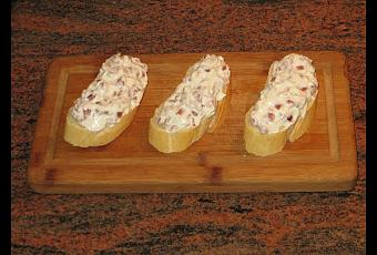Cortáis el pan en rodajas y el jamón en trozos pequeños. El jamón se lo añadís a la mezcla y colocáis una montaña sobre las rebanadas de pan. Ya veréis que bocado más exquisito y si visitáis Zaragoza no dejéis de probar este pincho.