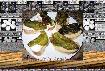 - Limpiamos los pimientos, los troceamos en trozos no muy grandes, salamos. - Los freímos en aceite con 2-3 guindillas, a fuego medio-alto. - Los ponemos sobre rebanadas de pan, podemos poner al pan queso de untar, queso brie, manchego… o solo pan con pimiento.