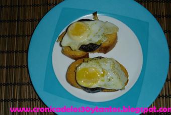 Esta receta es muy muy facilita, lo único que tenemos que hacer es tostar unas rebanaditas de pan, también podemos utilizar unas tostaditas; cortamos una morcilla en rodajitas y la pasamos por la sartén (un truquito para que no se os desmenuze es pasarla antes por un poquito de harina), freímos un huevo de codorniz y se lo plantamos encima... y está para chuparse los dedos.