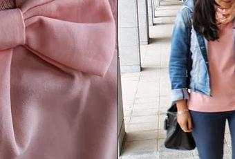 Today I'll show you a new outfit in which the protagonist is this super-romantic sweater pink stick. On the front is simple but the back is where leadership comes into its own with a bow on top, transparent medium V-shaped lace at the edge. :)
