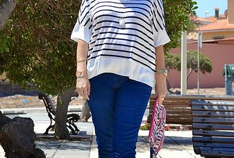 Hoy un look con jeans y camiseta de rayas (sí, otra vez) esta vez con zapatos rosas y clutch de estilo étnico, que ya saben están muy de tendencia esta temporada.