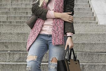 Buenos días muñecas! Hoy os traigo mi último look de Madrid, la verdad es que nos hizo un fin de semana estupendo, aproveché para lucir uno de mis tacones favoritos de camuflaje combinados con un toque de rosa, jeans boyfriends y chaqueta de piel obsequio del desfile Glamour Street Fashion Show que me vísteis aquí y aquí ¿os acordais? La bufanda tiene más de 10 años y nos la hizo mi madre a mi y a mi hermana, es super suave, y calentita, de esas que no se estropean con los lavados, nada que ver con las que se venden en tiendas! Sin duda un gran tesoro. Espero que os guste el look! Mil besos