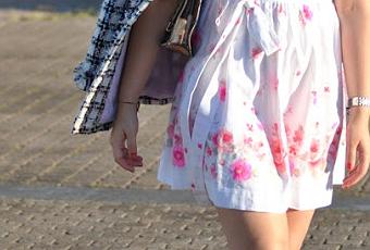 Esta vez me he atrevido con cuadros y flores, y me encanta el resultado. El look está basado en mi nuevo vestido de la preciosa tienda ‘Muñeca de Trapo’ de Sanxenxo, y lo he combinado con complementos metálicos y esta chaqueta inspiración Chanel, diseñada por mi.