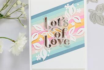 El reto de agosto va de franjas y yo he creado las mías con el troquel "Slim Stripes Dies". También he usado "Lots of love" para el sentimiento y los troqueles "Curvy Leaves" y "Garden Wreath" para decorar.