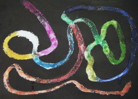 5.- Pintar libremente con las acuarelas, notar que el agua se extiende por los caminos. Dejar espacios en blanco para aprovechar el color de la sal.