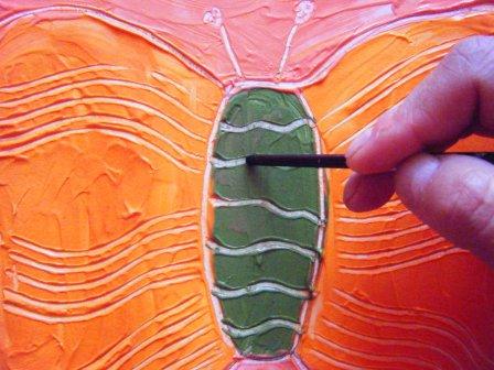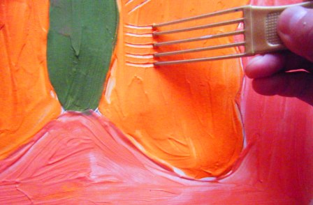 3.-Con el peine y el cabo del pincel, esgrafiar al gusto del autor/a.