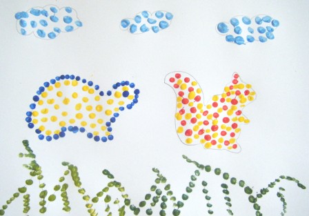 5.- Pintar las nubes y el césped.6.- El trabajo terminado.