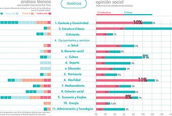 Temáticas a mejorar: aquellas donde se concentran el mayor número de problemáticas tanto desde la visión técnica como ciudadana: movilidad, economía y empleo, conectividad y medio ambiente.