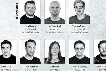 Se ha confirmado las presencias, por parte de los organizadores, de 8 artistas (Los que veis en la imagen que encabeza la entrada), al menos en primera instancia, de la actual encarnación del Eavy Metal y del grupo de mas reciente creación en la parte artística de GW, el Army Painter Studio. Tres del Army Painter Studio y cinco del Eavy Metal Studio, con una sola chica en el de (Nat Slinn) entre los integrantes. Ellos serán los encargados de dar consejos, hacer demostraciones, etc, durante el evento para figuras de W40K, AOS y demás.